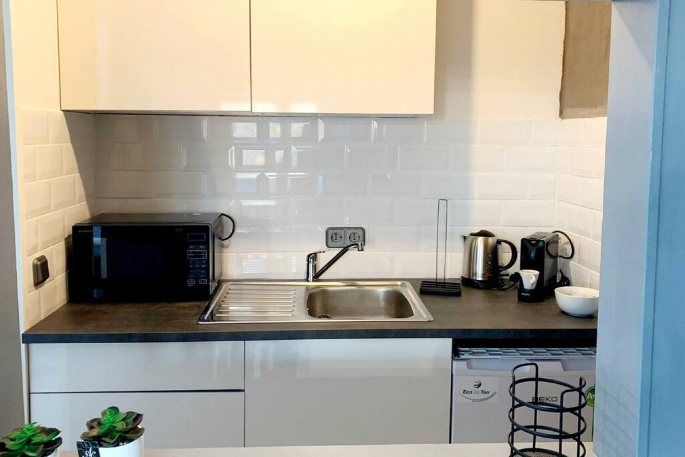Du bekommst hochwertige Bettwäsche und Handtücher zur Verfügung gestellt. Außerdem erwartet dich ein Begrüßungsset mit Kaffee, Tee und Wasser.