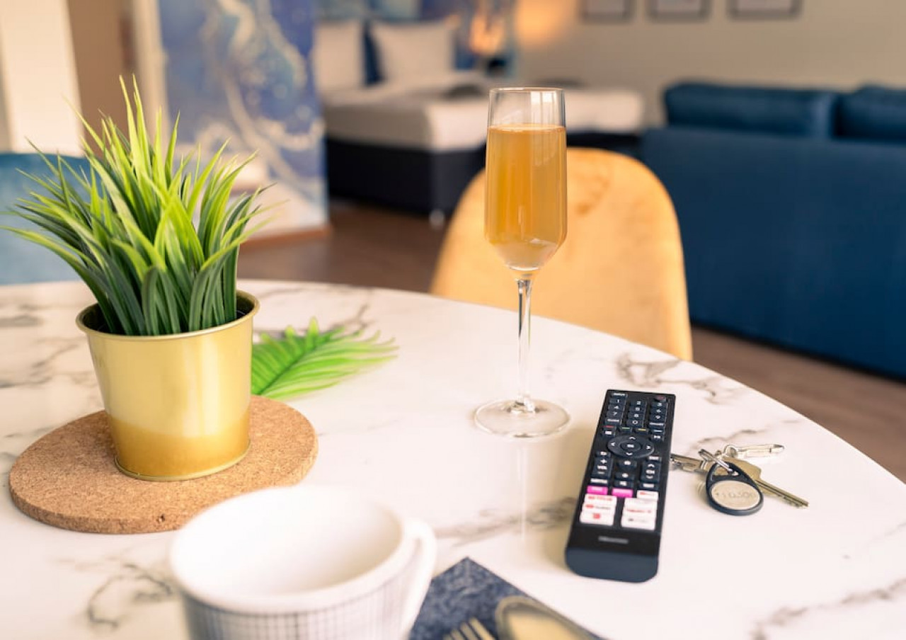 Du bekommst hochwertige Bettwäsche und Handtücher zur Verfügung gestellt. Außerdem erwartet dich ein Begrüßungsset mit Kaffee, Tee und Wasser.