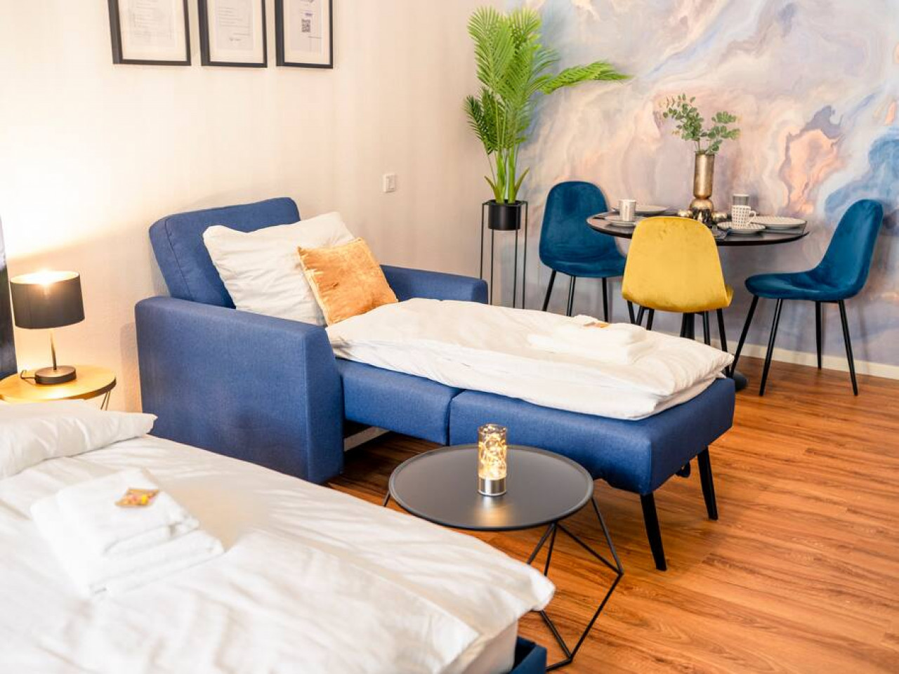 In dieser anspruchsvoll gestalteten Wohnung erwartet dich ein bequemes Queensize-Bett, auf dem du dich nach einem ereignisreichen Tag in der Stadt perfekt entspannen kannst. Zusätzlich stehen gemütliche Schlafsessel zur Verfügung, die sich ideal für eine dritte Person eignen. Die Wohnung bietet Platz für bis zu 3 Personen, so dass du sie wunderbar mit Freunden oder der Familie teilen kannst.