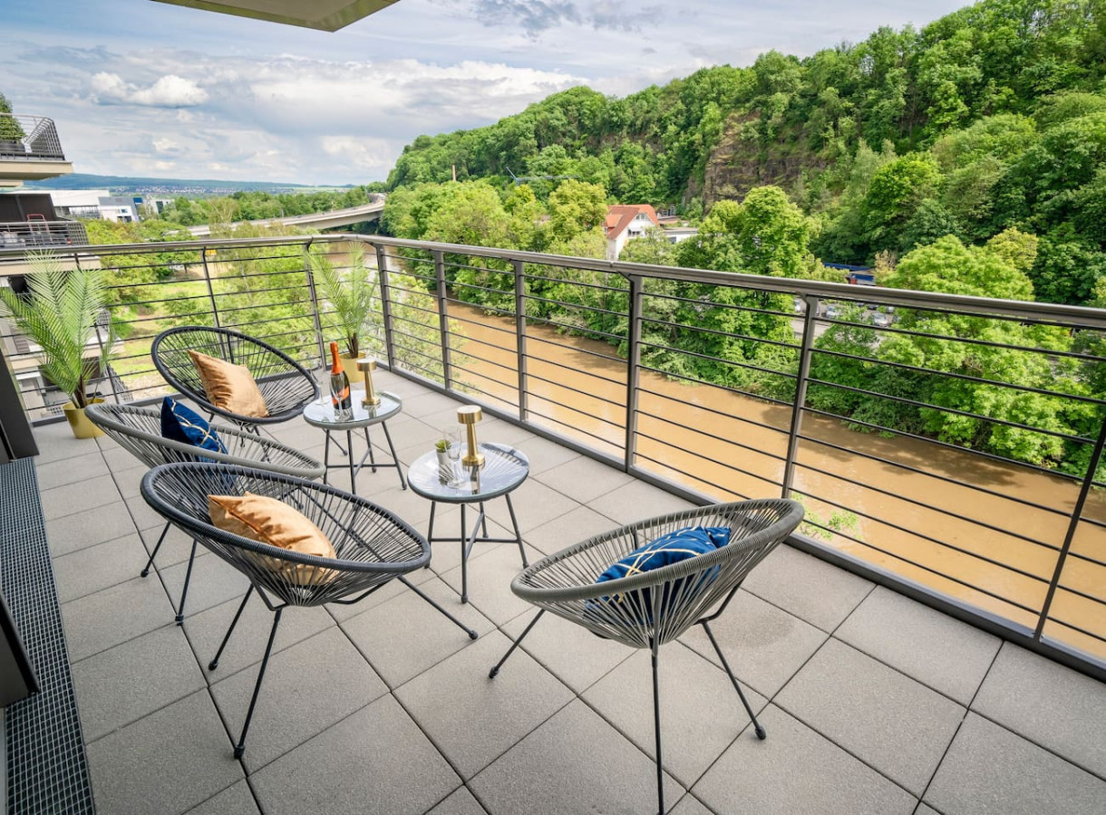 ✦ großer Balkon mit direkten Flussblick